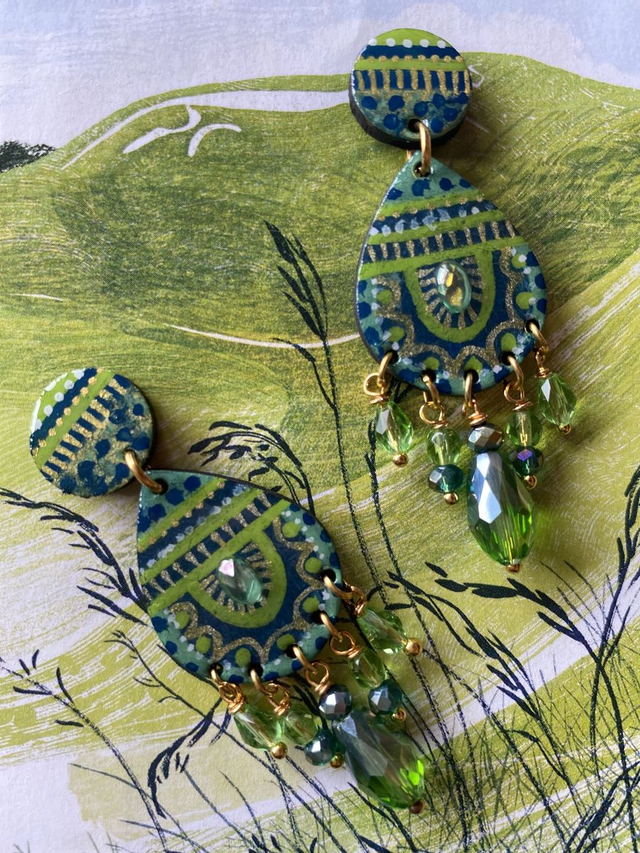 Paire de boucles d'oreilles en bois recyclé peintes à la main