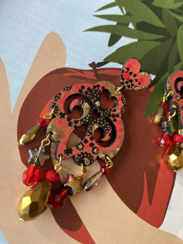 Paire de boucles d'oreilles en bois recyclé peintes à la main