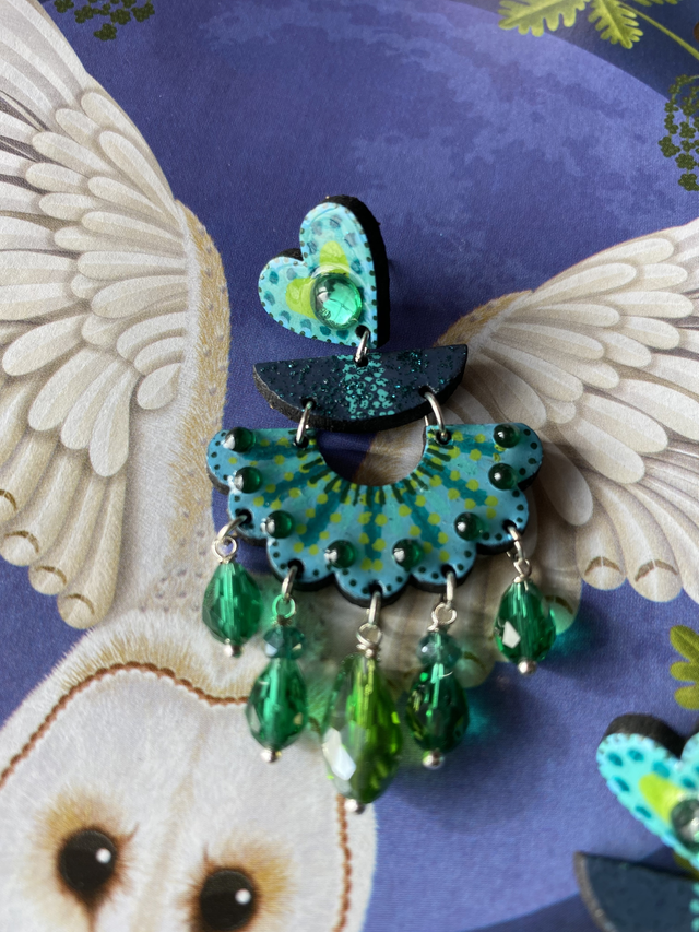 Paire de boucles d'oreilles en bois recyclé peintes à la main