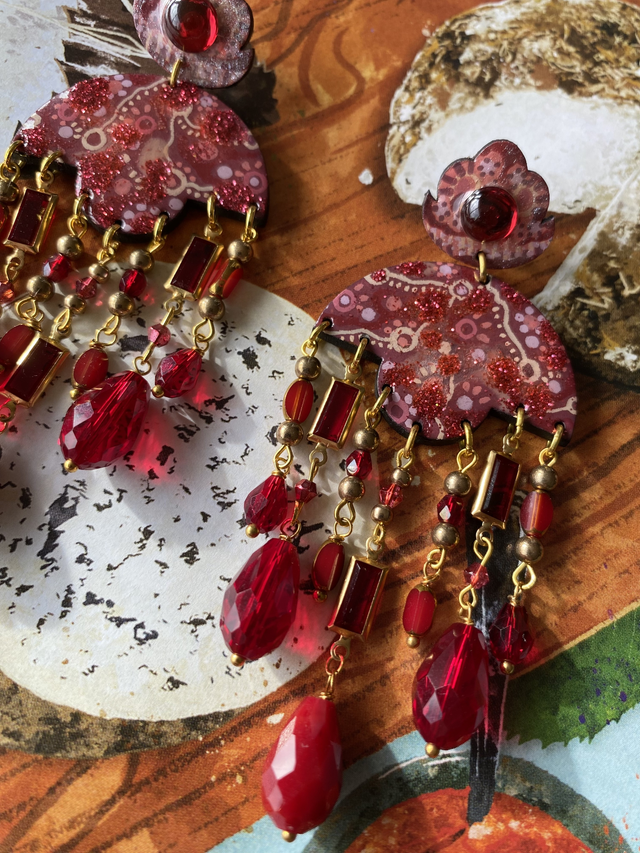 Paire de boucles d'oreilles en bois recyclé peintes à la main